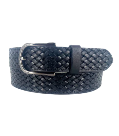 חגורת עור איטלקית קלועה יוניסקס בצבע שחור עם אבזם כסוף
