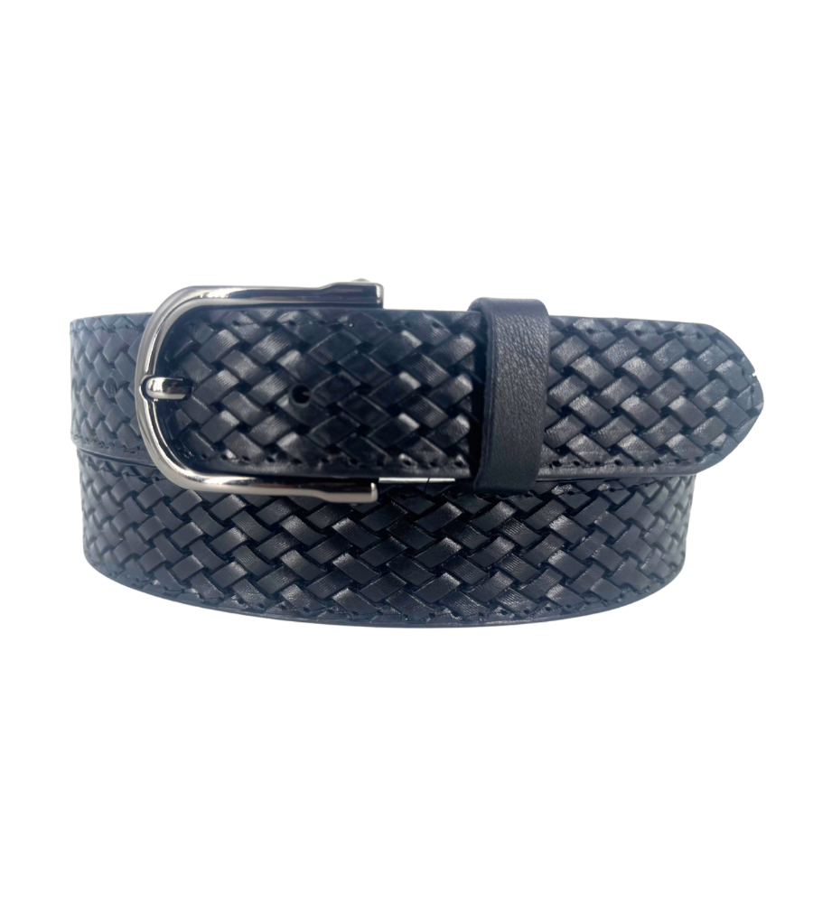 חגורת עור קלועה בצבע שחור קלאסי, מתאימה לנשים ולגברים.